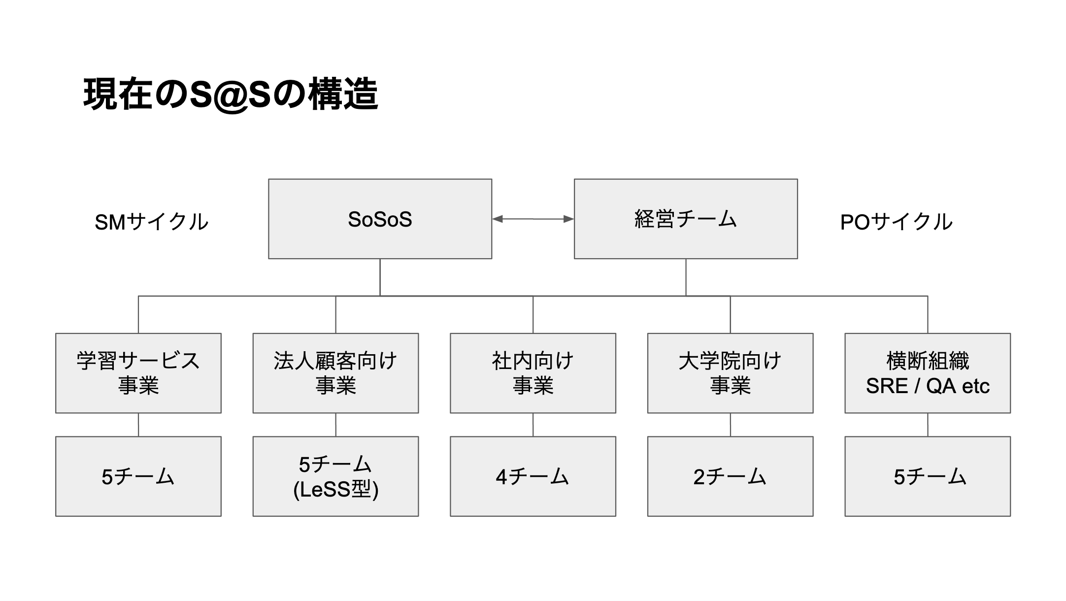– グロービスでは、開発や運用にスクラムおよびScrum@Scaleを組織的に活用されているとのことですが、現在の組織体系について教えていただけますでしょうか?