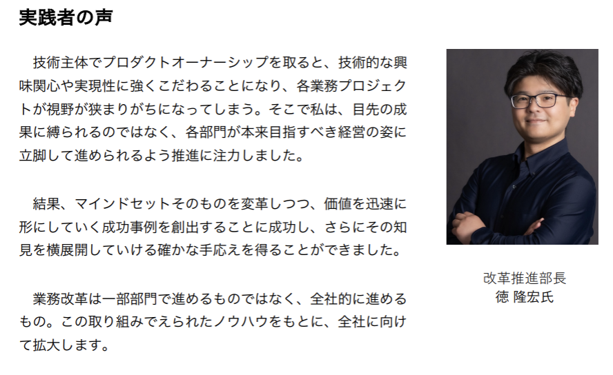 ・経営層と現場が同じ目的を持ち、短期間で成果を出すための組織デザイン